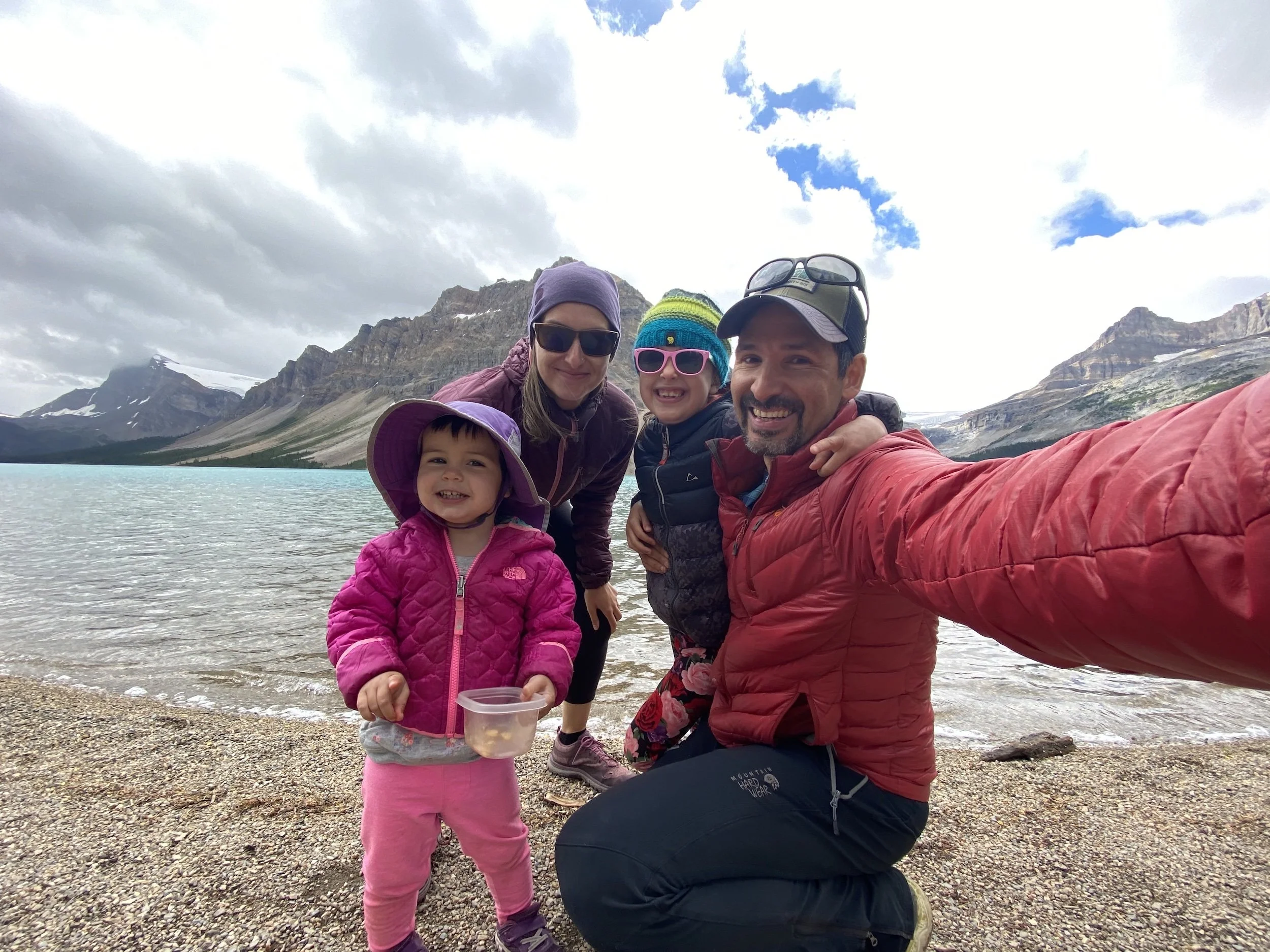 The whole family revisits Bow Lake. Photo: Paul Zizka.